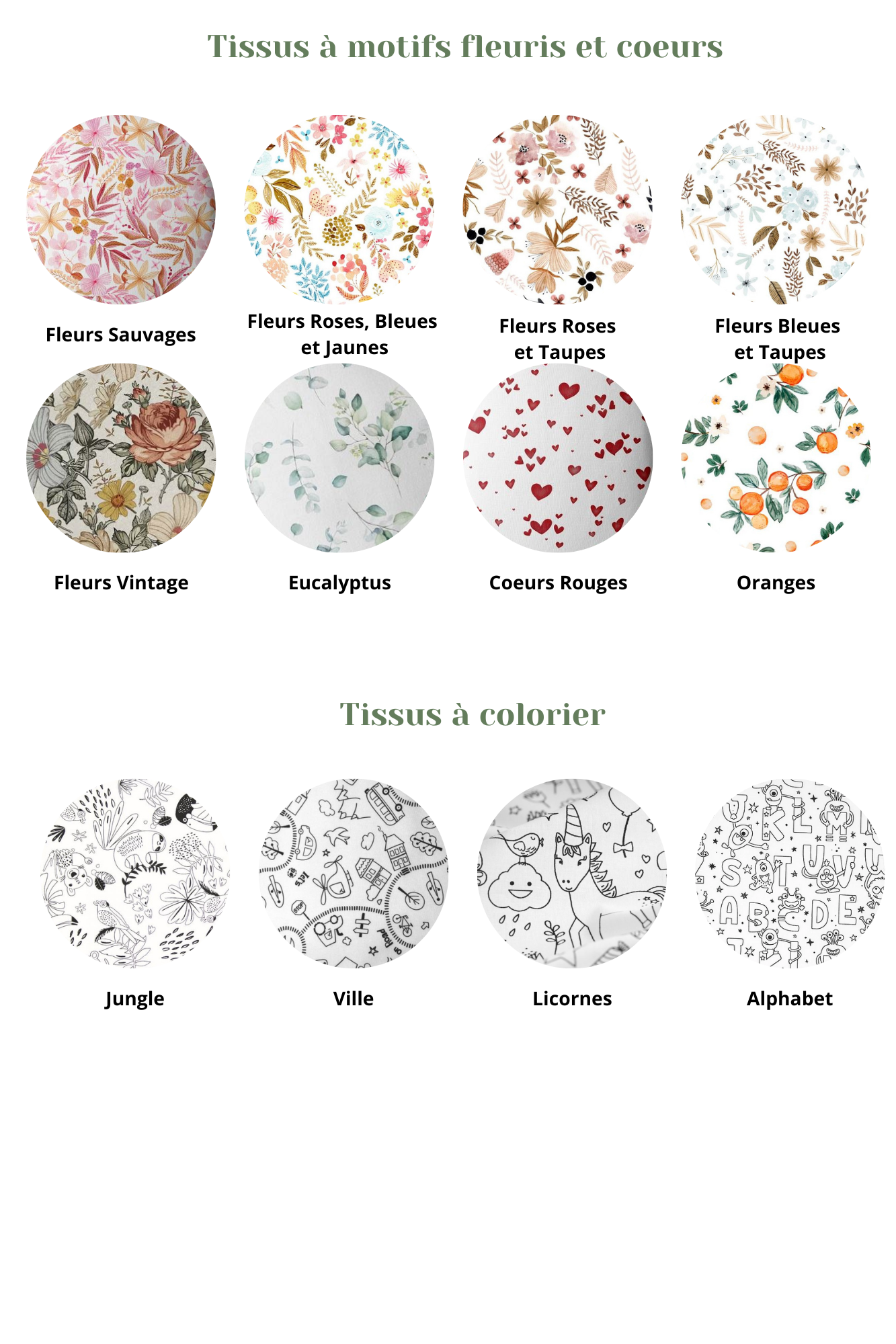 Les tissus proposés par Un Nuage, Une Etoile